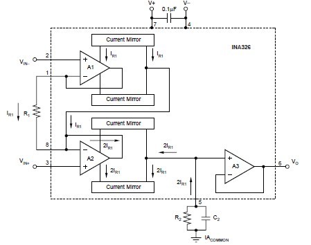 INA326EA/2K5 features: (1)PRECISION: LOW OFFSET: 100μV (max); (2)LOW OFFSET DRIFT: 0.4μV/℃ (max); (3)EXCELLENT LONG-TERM STABILITY; (4)VERY-LOW 1/f NOISE; (5)TRUE RAIL-TO-RAIL I/O; (6)INPUT COMMON-MODE RANGE: 20mV Below Negative Rail to 100mV Above Positive Rail; (7)WIDE OUTPUT SWING: Within 10mV of Rails; (8)SUPPLY RANGE: Single +2.7V to +5.5V; (9)SMALL SIZE: microPACKAGE: MSOP-8, MSOP-10; (10)LOW COST.